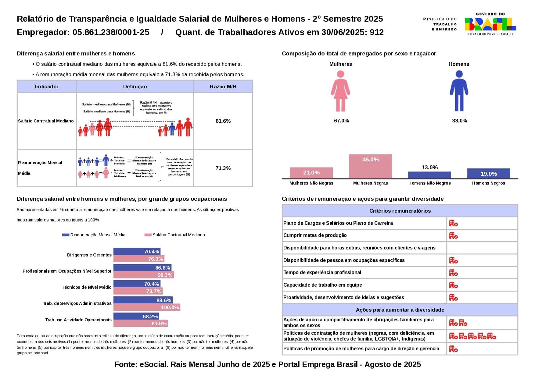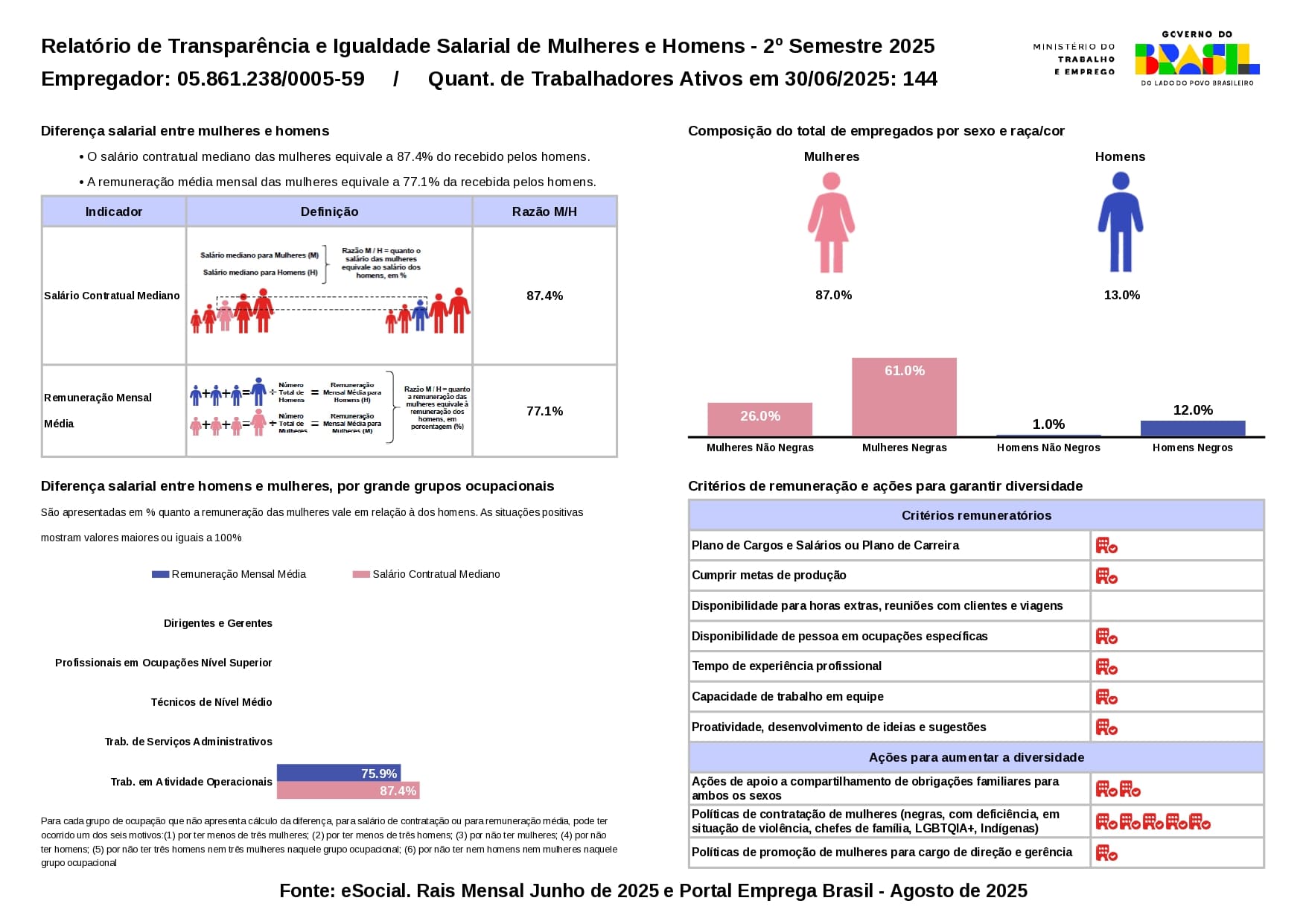 não faz distinção ou discriminação dos seus funcionários por cor, etnia, sexo, deficiência ou qualquer outra forma de preconceito.